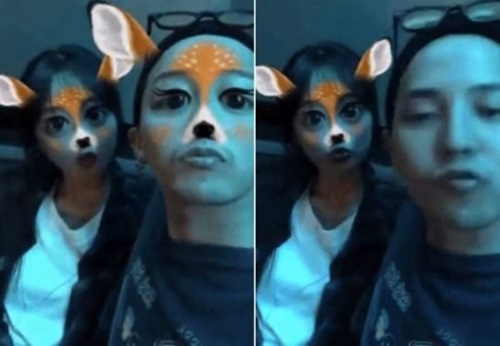 映像の中の2人は、横並びに座って正面を見つめていた。アプリの映像効果によって顔が見えない状態であったが、右側の男性が頭を下げた瞬間加工が解除され、G-DRAGONの顔が明らかになったのである。現在当該の投稿は削除されている。