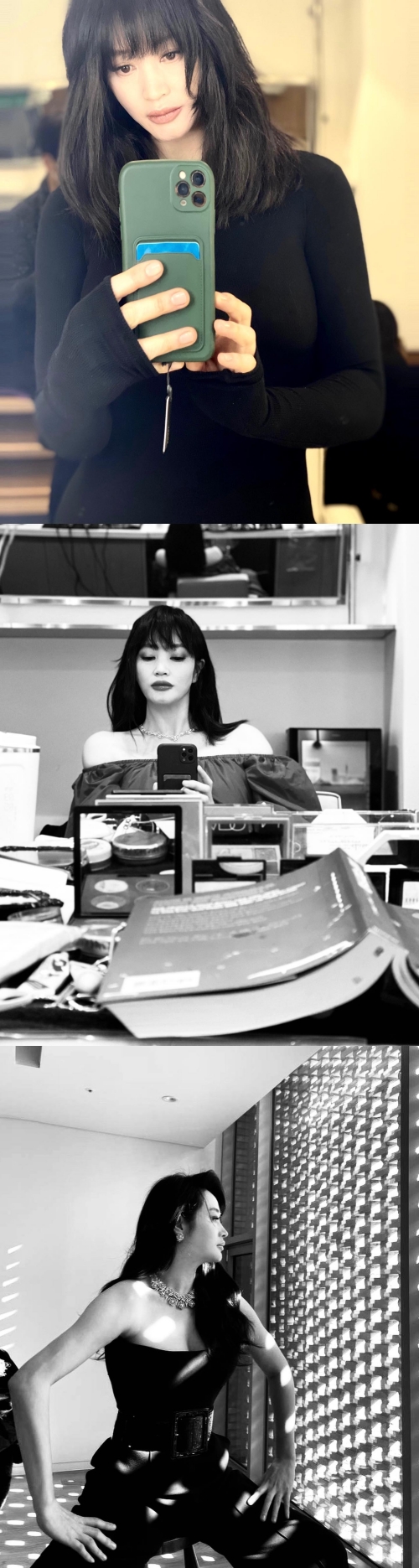 公開された写真には、鏡の前で自撮りをするキム・ヘスの姿が写っている。