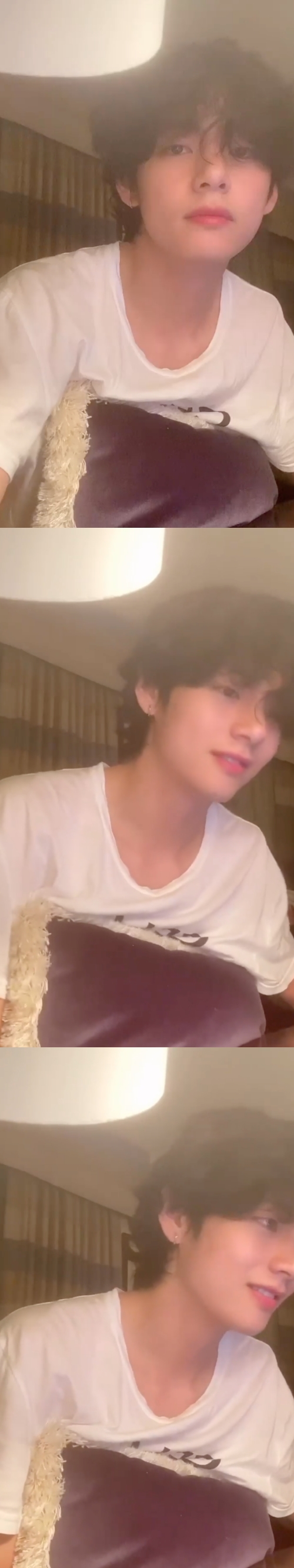 さらに、別の動画では、先ほどの様子とは打って変わったVの“オフ姿”を垣間見ることができる。ラフなTシャツを着用しており、顔はほんのりと紅潮している。