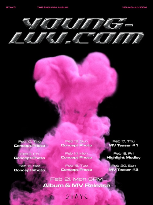 STAYCは2月8日、公式SNSを通じて2ndミニアルバム『YOUNG-LUV.COM』のスケジュールポスターを公開した。