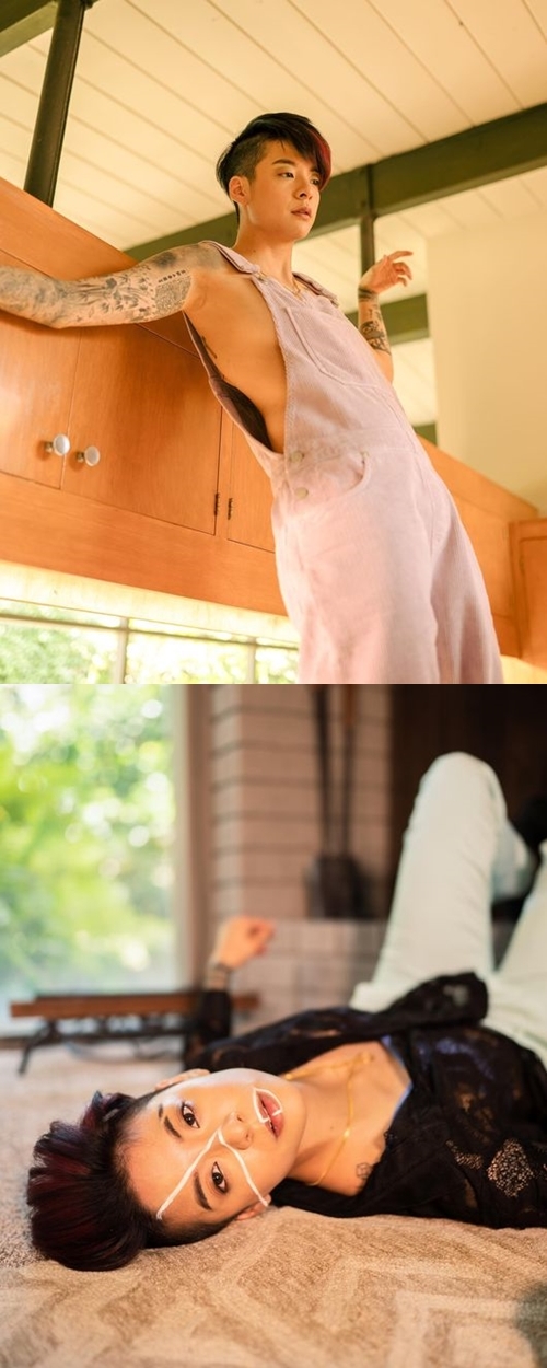 写真に写ったAmberは、なにも着ていない素肌にサスペンダーだけを着用し、特有の魅惑的な表情を浮かべている。さらに、肩から両腕を覆う彼女のタトゥーも印象的だ。Amberが表現する卓越したセクシーさも目を引く。