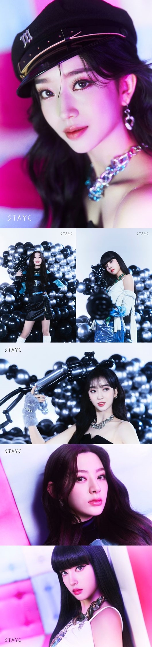 また、ほかのビジュアルでは、STAYCが真っ白な背景と独特なテクスチャーが目立つ風船をバックに、堂々としたカリスマ性を発揮。ダイナミックかつシックなオーラを放ち、新曲への好奇心を刺激した。