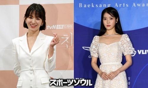 女優ソン・ヘギョが、歌手IUの新たなドラマ撮影を応援した。