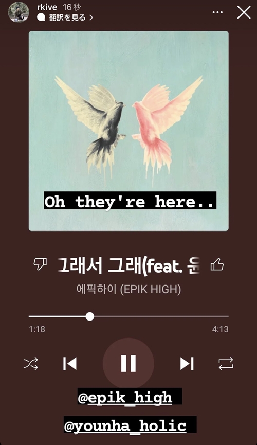 さらに2月14日には、BTS(防弾少年団)のRMが自身のSNSにEPIK HIGHの新曲『Gray So Gray』のストリーミング画面のスクリーンショットの写真とともに、「Oh they’re here…(彼らが来た)」というメッセージを書き込んだ。