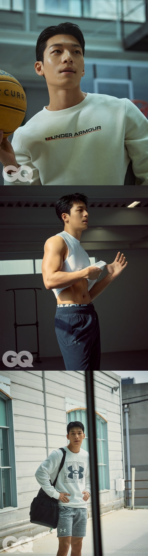 ウィ・ハジュンとUNDER ARMOURのコラボカットは、『GQ KOREA』3月号で確認可能だ。