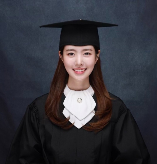 写真を見ると、卒業生らしく角帽とアカデミックドレスを着用し、ニッコリと微笑えむチン・セヨンの姿が。