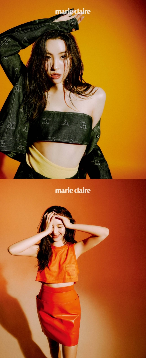 公開されたカットのなかで、ソンミは鮮やかなオレンジ色の背景をバックに、溌剌とした“ヘルシー美”を見せつけている。