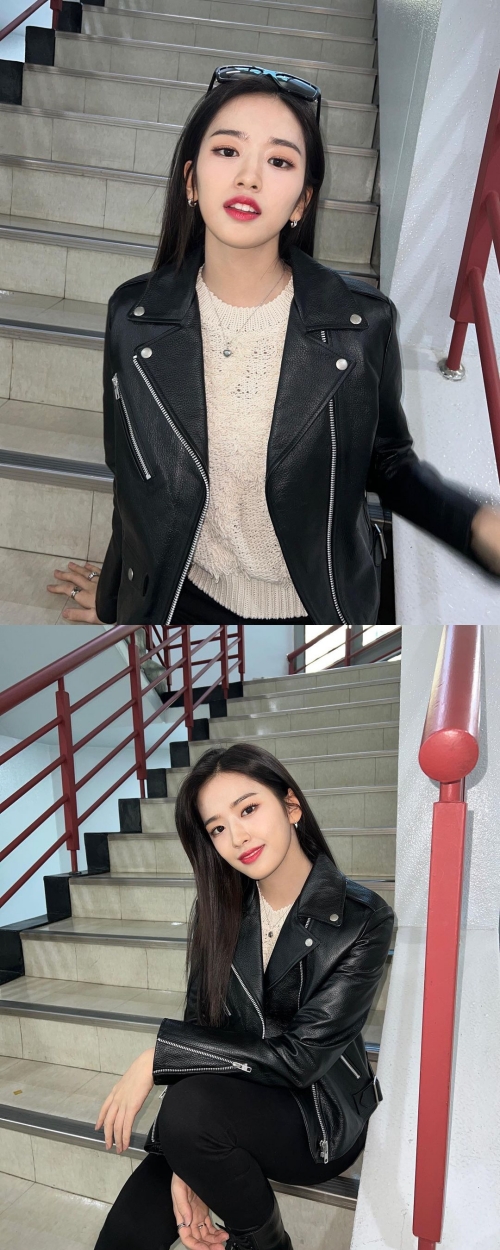 まずは、ユジンが最近「今日は人気歌謡♡(ユジンがMCを務める音楽番組)」というキャプションとともに投稿した写真。サングラスを頭にかけたユジンの姿が写っており、赤リップがなんともいえない色気をまとっている。サングラスやライダースジャケットなどのシンプルかつスタイリッシュなアイテムが、ユジンの大人っぽい魅力を倍増させた。