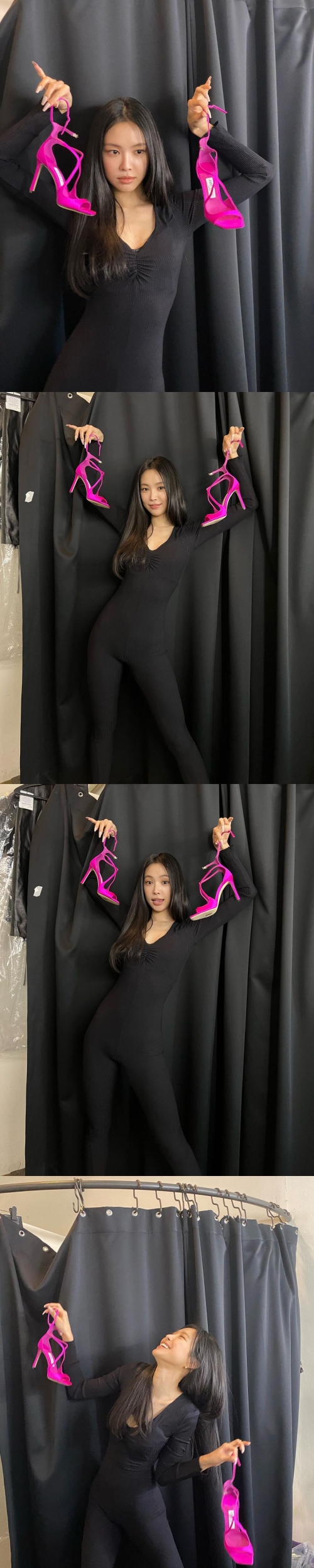 写真には、ショッキングピンクのハイヒールを両手にカメラを見つめるソン・ナウンの姿が写っている。