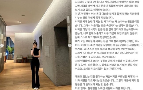「私が見てきたお金持ちは、お金を大きく増やして運用するような人なので、自分がお金持ちだとは思ったことはない。しかし、私のせいで不愉快な思いをさせてしまって申し訳ない。きれいでカッコいいものが好きだが、両親が私に贅沢や見栄などを教えたことはない。だからこそ、自分の行動を振り返るようになった」とし、もう一度頭を下げた。