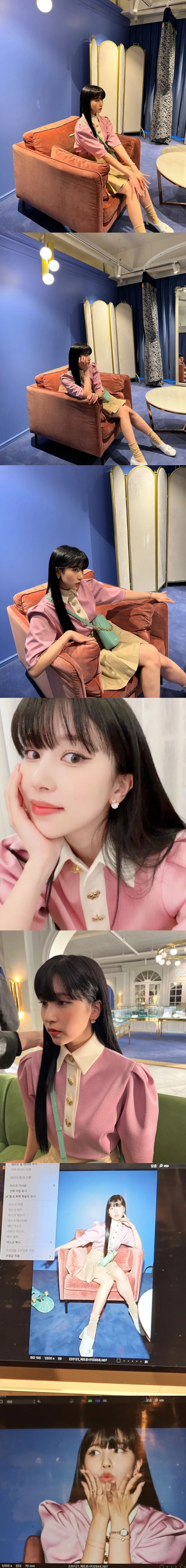 最近、同ブランドの新ミューズに抜擢されたミナは、カメラを見つめながら真剣に撮影に臨んでいる。