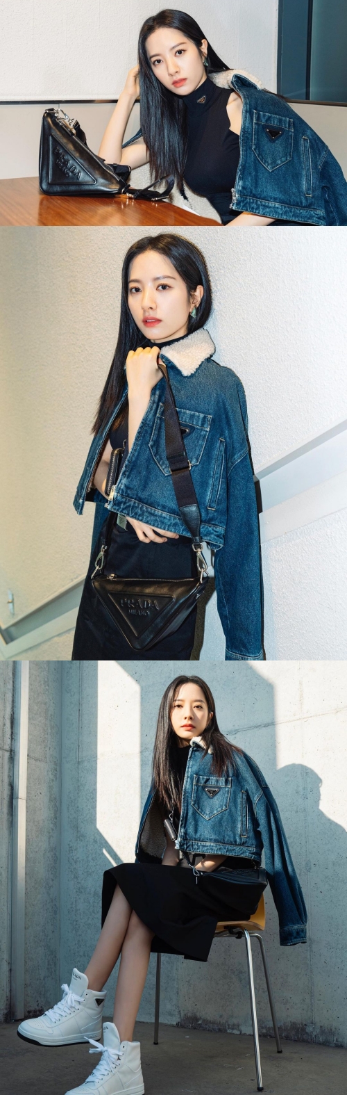 鎖骨をチラリとのぞかせたボナのデニムジャケット姿に、ネット上では「顔面偏差値高い」「全方位ビューティフル」「綺麗すぎて声でた」といった反応が上がっていた。