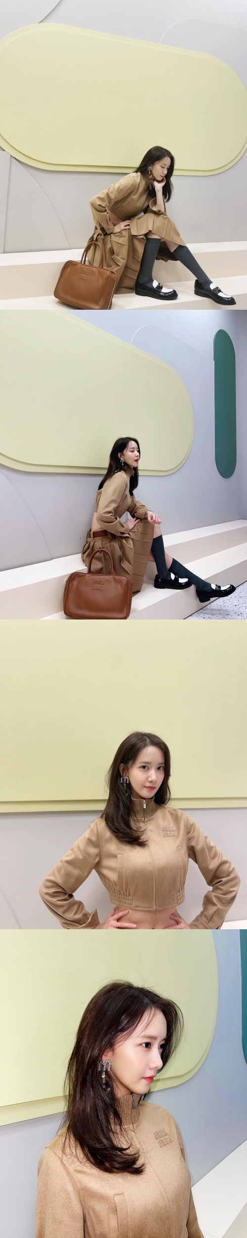 写真には、「miumiu(ミュウミュウ)」の新作アイテムを身につけたユナの姿が写っている。