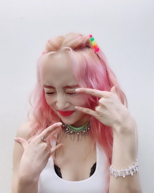 公開された写真には、日本で行われた『ニコル CONCERT 2019~Summer Wave~』の舞台を終えたニコルの姿が写っている。明るいピンクに染めたヘアカラーと大胆なカットが施された衣装は、見る者を惹きつけた。