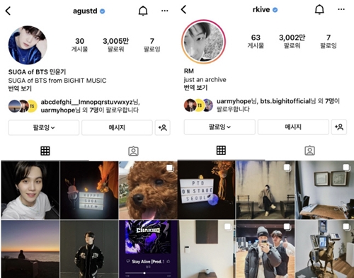 さらに、翌11日9時頃には、RMが最後にフォロワー3000万人達成したことで、BTS全メンバーがインスタグラムのフォロワー3000万人のアカウントになった。