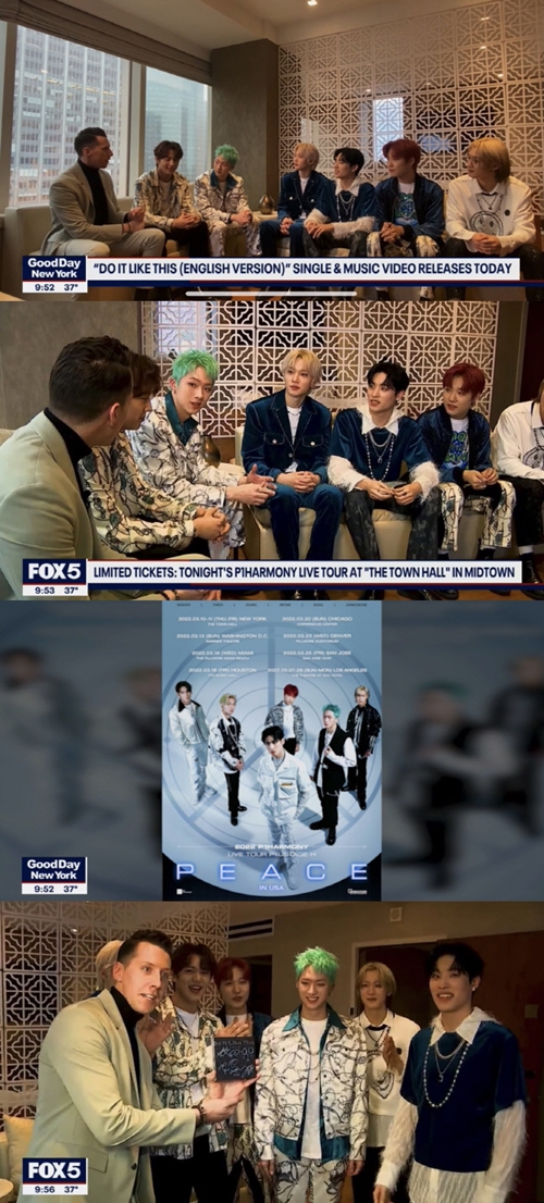 P1 Harmonyは3月10日9時(現地時間)、米FOXテレビの『グッデイニューヨーク』に出演。番組MCとともに、同日発売したアメリカシングルとツアーについて深い話を交わした。