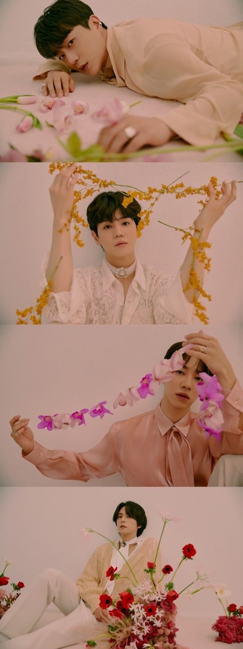 それぞれ、ユン・ドゥジュンはピンクの花、ヤン・ヨソプは黄色の花、イ・ギグァンは紫の花、ソン・ドンウンは赤い花を持っている姿が、まさに“花より男子”といえるだろう。