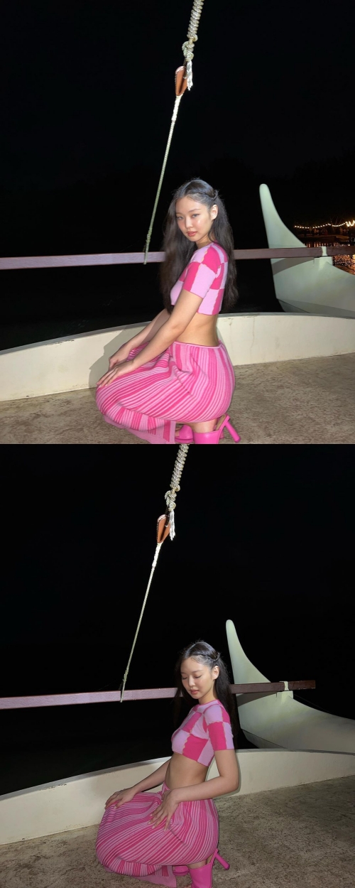 「Pink hawaiian girl」と綴られた写真には、こちらを見つめてポーズを決めるジェニーの姿が写っている。