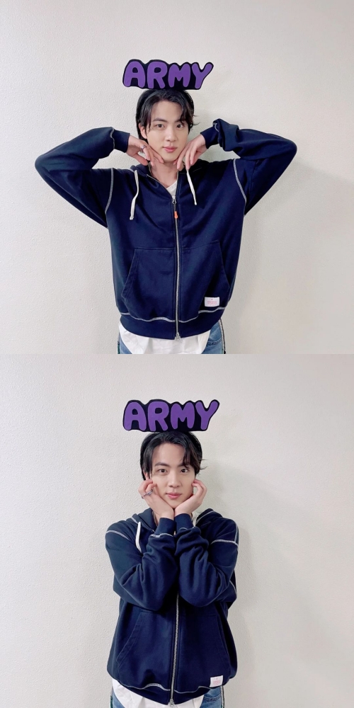 まず、JINは自身のインスタグラムを通じて、「ARMY(BTSのファンネーム)ハート」という書き込みとともに2枚の写真を投稿している。「ファンのために準備した」という“ARMYカチューシャ”を被りながら、キュートなポーズを披露するJIN。特別な愛情で多くのファンを喜ばせた。