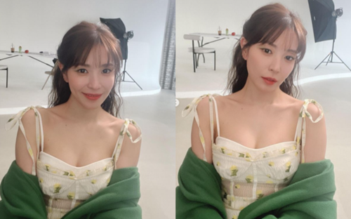 BoAは花柄のノースリーブビスチェを着用しており、肩のラインと美しい鎖骨が目を引く。清純さと色っぽさを兼ね備えたオーラが感嘆を誘う。