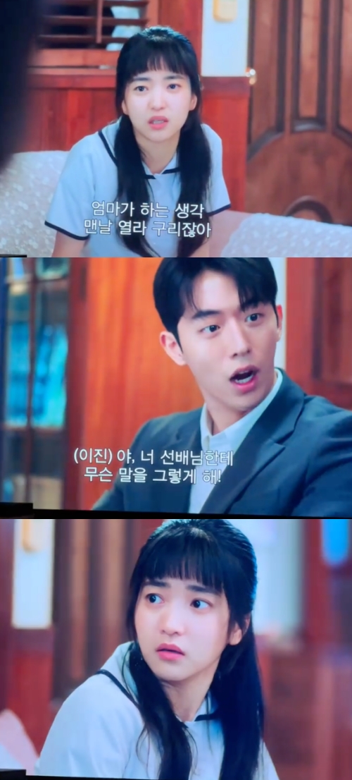 映像は、主人公のナ・ヒド(演者キム・テリ)と彼女の母親シン・ジェギョン(演者ソ・ジェヒ)が、ペク・イジン(演者ナム・ジュヒョク)を挟んで口論するシーン。