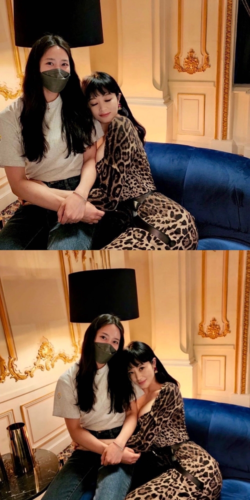 公開された写真には、ヒョウ柄のドレスを着用したキム・ヘスの姿が写っている。女性スタッフの腰に手を回し、うっとりとした表情からは、大いなる信頼感が見て取れる。