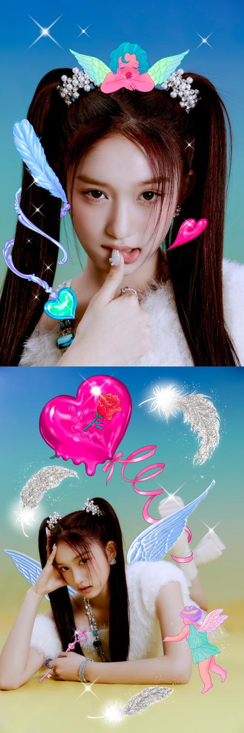 続いてイソは、ツインテールのヘアスタイルでラブリーながらもはつらつとした魅力を発揮。“愛のキューピッド”を具現化したようなルックスで、世界中のファンの心をときめかせている。