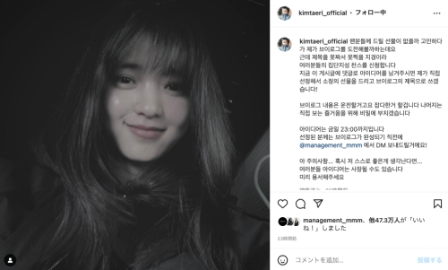 さらに、「でもタイトルが思いつかなくて、上手く撮れない状況なので、皆さんの“集団知性チャンス”を申請します。今この投稿のコメント欄にアイデアを残していただけたら、私が選んでVlogのタイトルを決めます。選ばれたアイデアを考えた方にはプレゼントを送ります」とファンからのアイデアを募った。