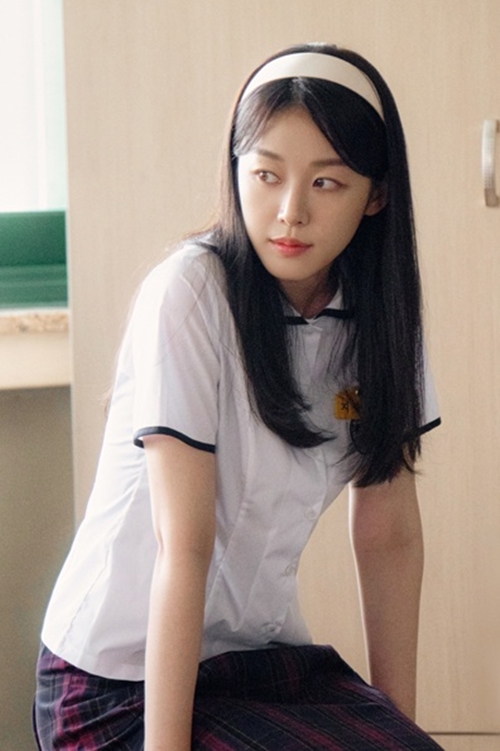 時代に合わせたスタイリングも完璧だったイ・ジュミョン。きっちりとした制服に当時流行した太めのカチューシャでポイントを与えた。