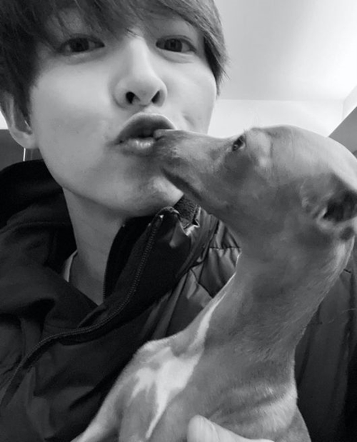 公開された写真には、ソン・ジュンギは犬を抱きしめてキスを迫っているような瞬間が切り取られている。