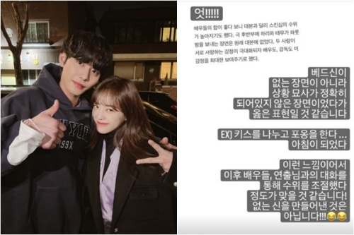 その後、とあるメディアは「俳優同士の呼吸が合ったため、スキンシップのレベルが高くなった。一夜をともにするシーンは元々台本になかった」と報じたため、キム・セジョンが間違っていた部分を訂正したわけだ。