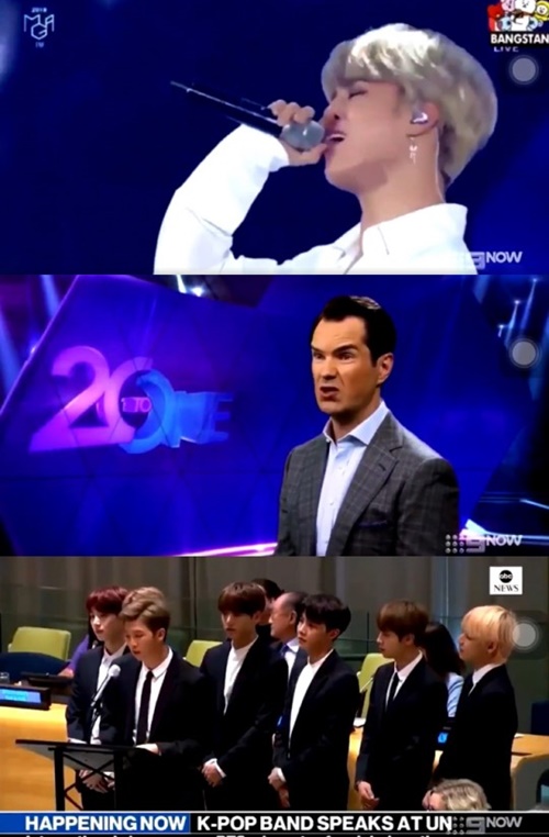 また、「アメリカのチャートで1位を獲得したくせに、英語を話せるメンバーが1人しかいない。歌とダンスが上手だそうだが、歌は完全にイマイチだ」としながらBTSのミスばかりを集めた編集映像を流す場面もあった。BTSの国連演説の快挙についても「国連で演説をしたそうだが、内容は多分ヘアスプレーに関するものだったのでは? 」と笑いながら意見したという。
