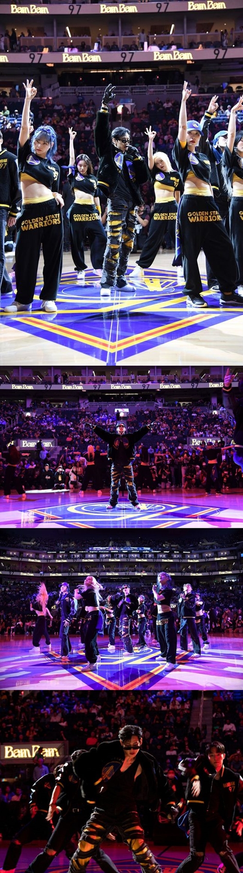 4月7日(現地時間)、ゴールデンステート・ウォリアーズ(GSW)のホーム、チェイス・センターで行われたロサンゼルス・レイカーズとの一戦では、ハーフタイムにBamBamが公演を行い、熱気を高めた。