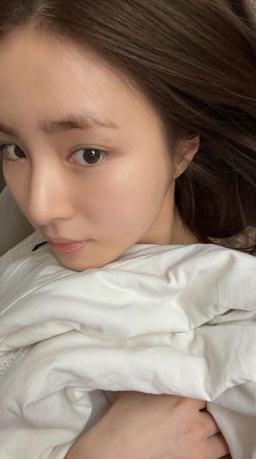 布団にくるまりながらこちらを見つめているシン・セギョン。化粧気のない肌は、まるで赤ちゃんの肌のような透明感を誇っており、すっぴん顔でも輝くビジュアルが目を引いた。