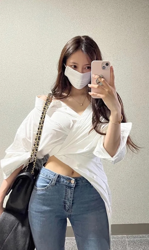 公開された写真のヒョミンは、仕事で移動中のようだ。白のブラウスとスキニージーンズを着用したヒョミンは、シンプルかつ洗練された美貌を誇っている。