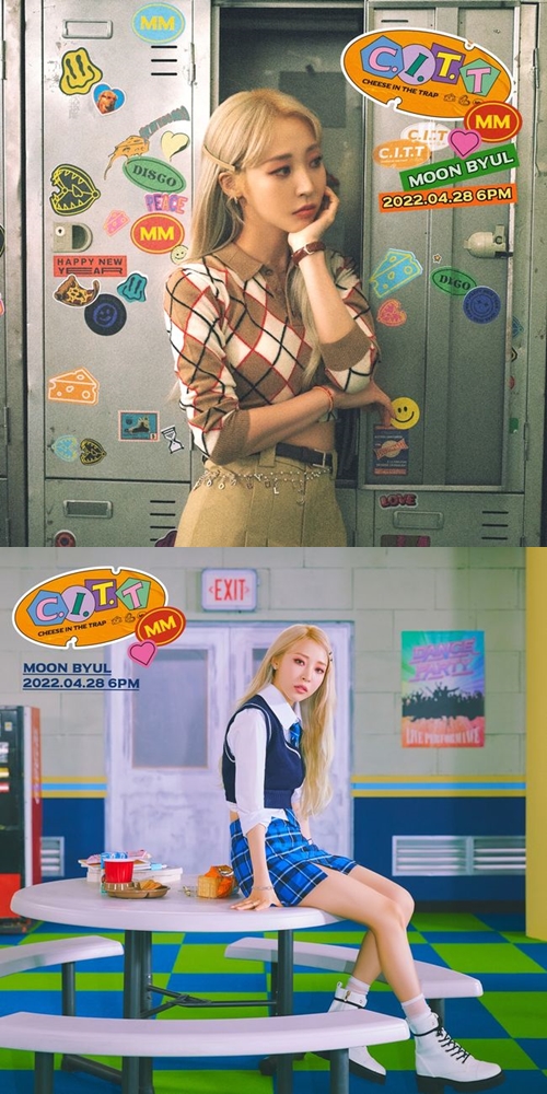 所属事務所のRBWは本日(4月18日)0時、MAMAMOOの公式SNSを通じてムンビョルのニューシングル『C.I.T.T(Cheese in the Trap)』のコンセプトフォトを公開した。