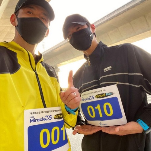 続けて「障がいを持つ子供たちがより暮らしやすい大韓民国を夢見ています。韓国初の子供専門リハビリ病院の開院6周年を記念するミラクル365ラン。2017年に障害を持つ子供たちのリハビリ治療費を支援するために、私が作ったクルーランです」と説明し、写真を公開した。