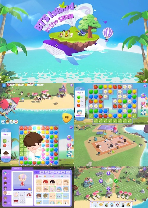 ゲームユーザーは「BTS Island: In the SEOM」の中でパズルプレイを通じて様々なアイテムを利用し、BTSキャラクターとゲームの背景である島を多彩に飾ることができ、島の中で様々なミッションを遂行するキャラクターを鑑賞し楽しむことができる。