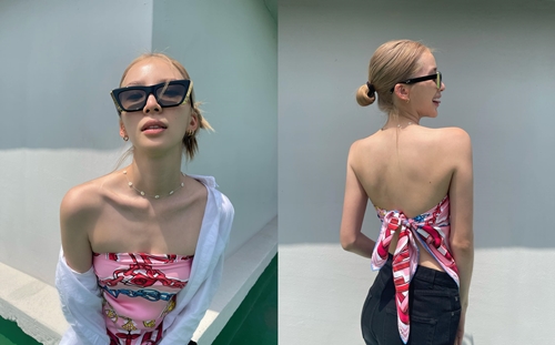 特に、アイリーンはスカーフを縛った後姿まで公開している。肩のラインだけでなく、背中まで公開し、トップモデルらしいセンスを見せた。