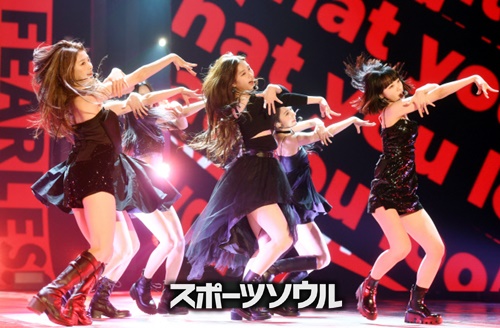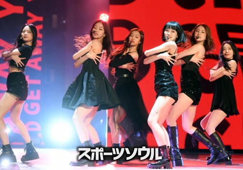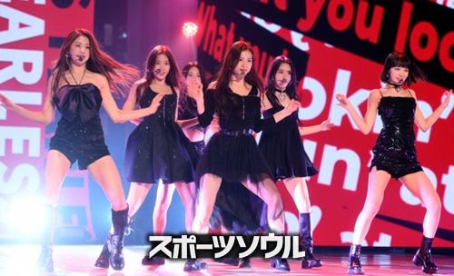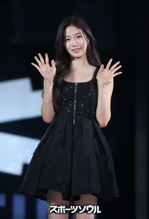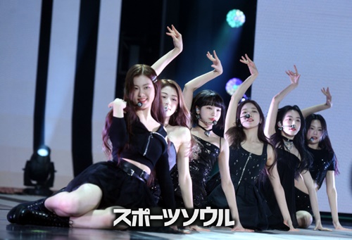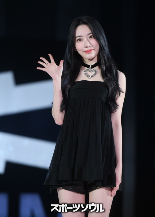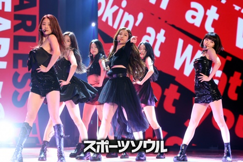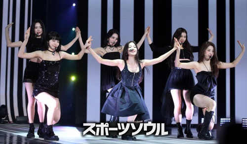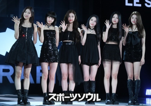 LE SSERAFIMのメンバーは黒で統一されたシックな衣装で報道陣の前に登場し、『FEARLESS』のステージを披露していた。