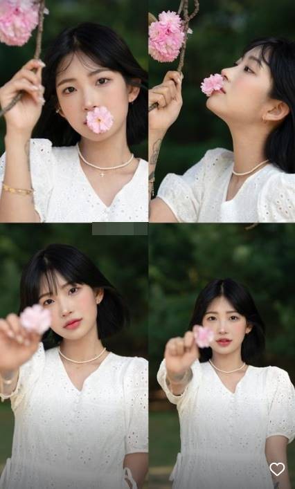 公開された写真でチェ・ジュンヒは、満開の桜の花を手にカメラを見つめている。白いワンピースはもちろん、ほんのり桜色に色づいた頬など、清純な魅力が伝わってくる。