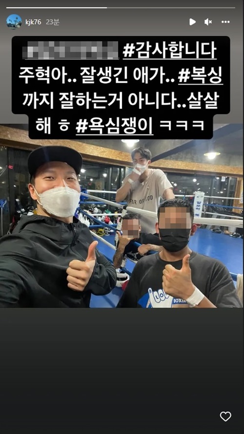 それは歌手キム・ジョングクのインスタグラム。キム・ジョングクは5月5日、自身のインスタグラムストーリーに「ジュヒョク、かっこいいコツイが… ボクシングまで上手なわけではない。ほどほどにしろ。欲張り」という書き込みと写真を掲載した。