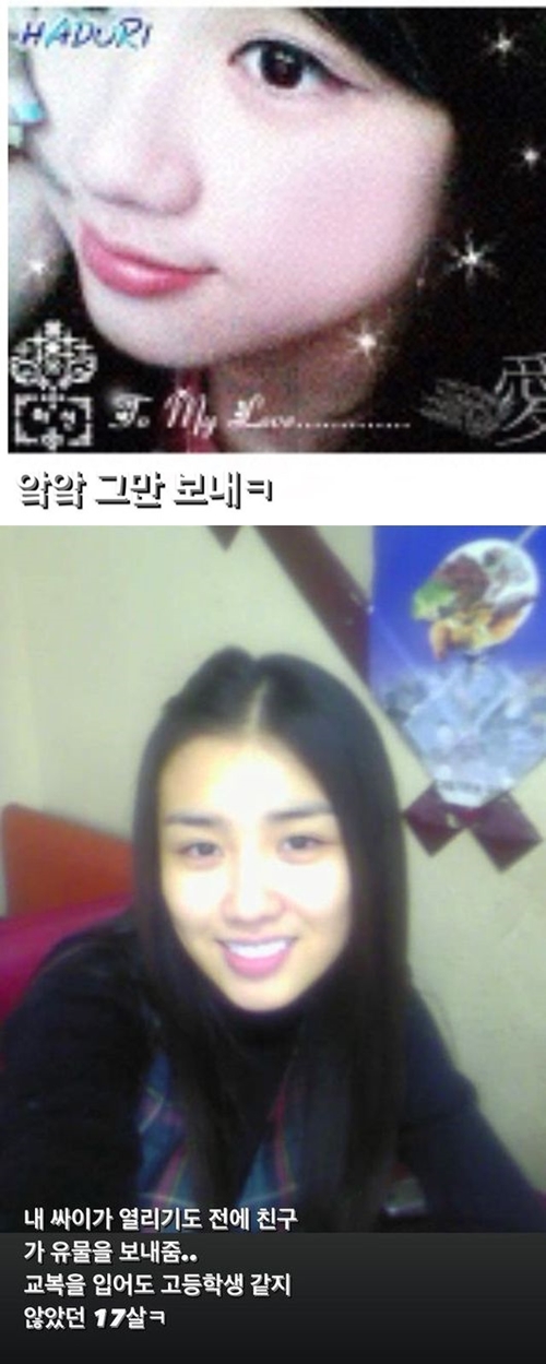 パク・ハソンは5月11日、インスタグラムのストーリーに「友達が遺物を送ってくれた… 制服を着ても高校生らしくなかった17歳w」という文と写真を投稿した。
