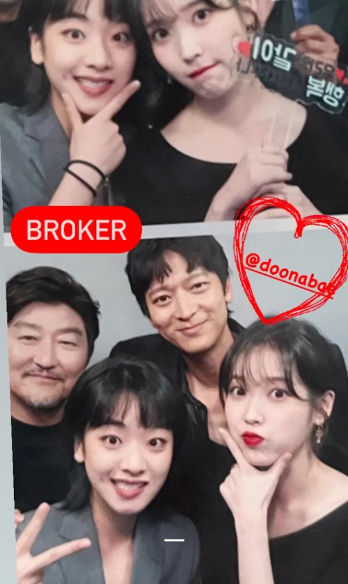 これは、是枝裕和監督の新作映画『ベイビー・ブローカー』に出演するキャスト陣の記念写真。IUはこの場にいないペ・ドゥナのインスタアカウントをタグ付けしている。