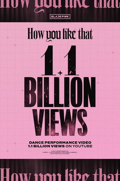 YGエンターテインメントによると、BLACKPINKの『How You Like That』ダンスパフォーマンス動画は5月11日午前0時2分頃、ユーチューブでの再生回数11億回を越えた。