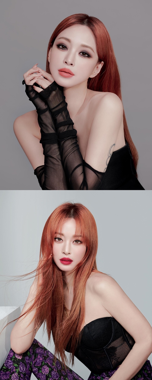 公開された写真のハン・イェスルは、強めのメイクと果敢なファッションを披露している。スモーキーメイクとオレンジヘアを合わせ、シックかつ高慢なビジュアルで目を引いた。特に、黒のチューブトップにパープルの花柄ボトムスというダークなコーデが魅力的だ。
