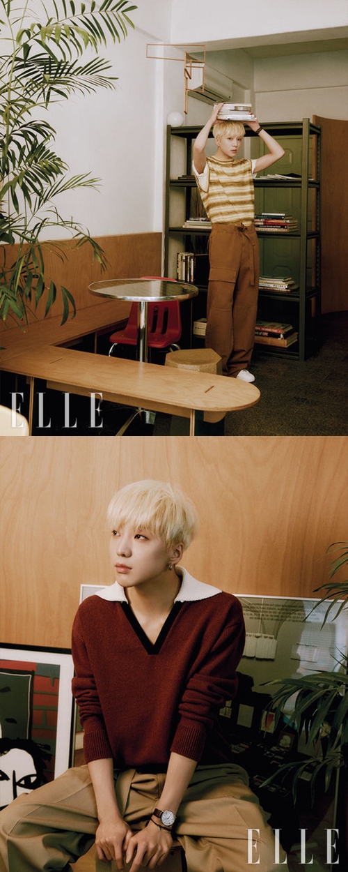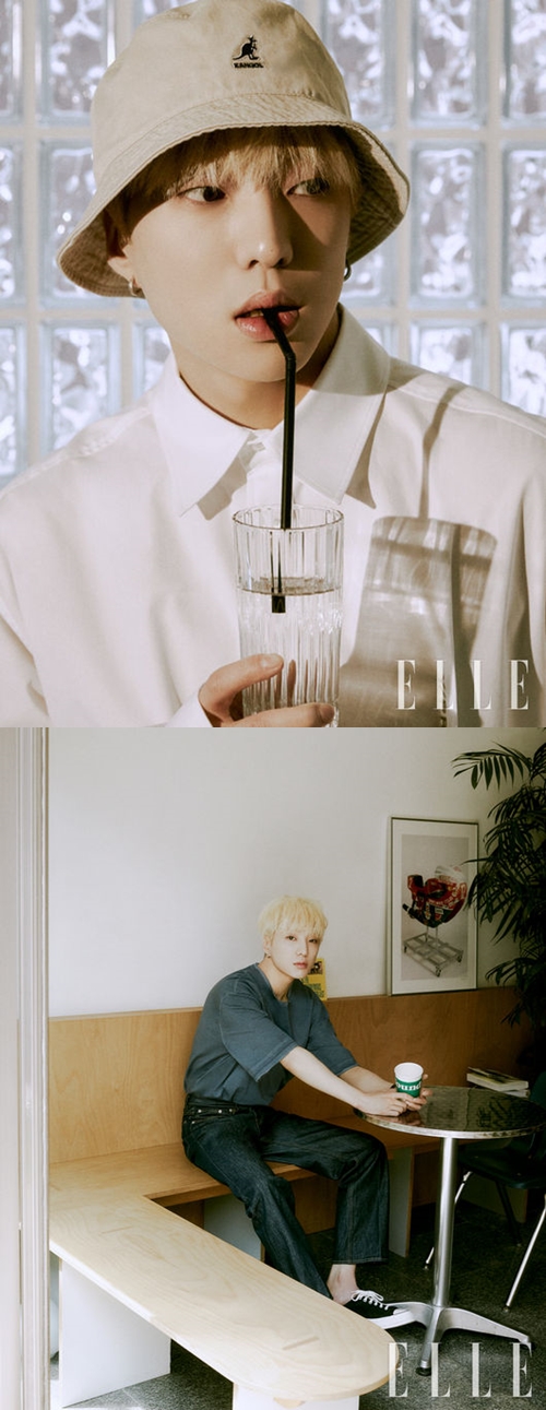 野外で行われた撮影のコンセプトについて話しながら、カン・スンユンがもし店を構えるならどんな空間になりそうかという質問には「写真が好きなので写真がきれいに撮れる、カフェとバーを兼ねた空間が良さそうだ。採光も重要だ。僕が好きなクロッフルとアフォガートは絶対メニューに入れる」と言い、可愛らしい一面を見せている。