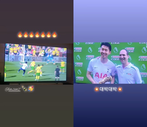 また、ソン・フンミンが得点王に与えられるゴールデンブーツを受賞する様子が映された2本目の動画でも、「テバク、テバク(すごすぎる!)」と綴られるとともに、「得点王に輝いたソン・フンミン選手です!」という実況に合わせてソン・フンミンを祝福するJ-HOPEの声が聞こえていた。