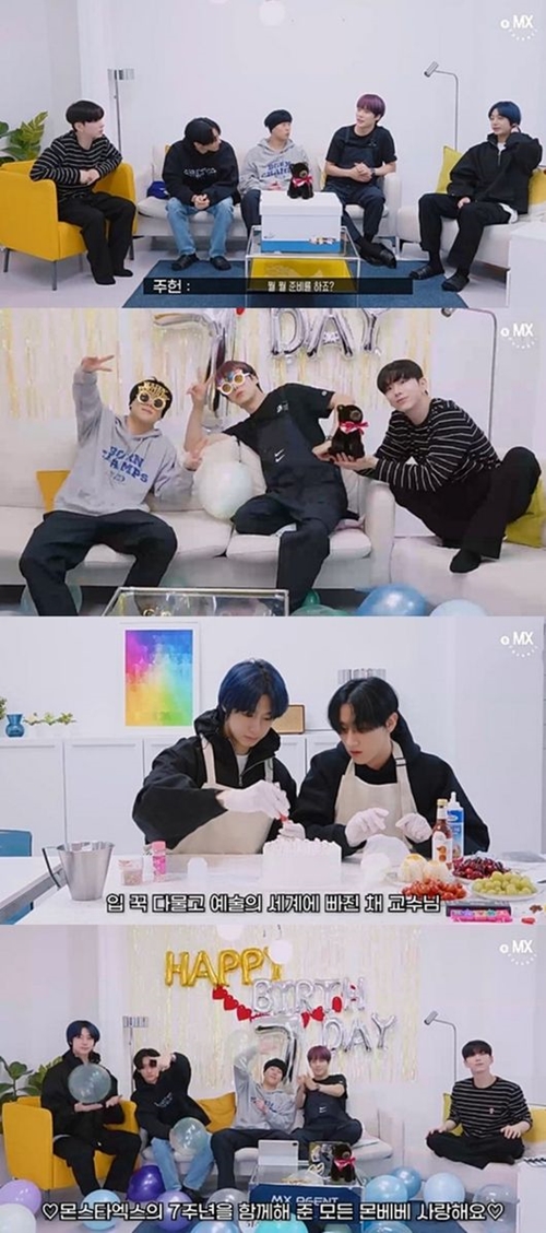 作業を終え、一カ所に集まったMONSTA Xは「値段をつけることができないケーキとパーティールームを作った」としてライブ放送に向けた期待感を表わした。最後に「7周年を作ってくれたモンベベ(公式ファンクラブ)おめでとう」とファンに感謝の気持ちを表わした。