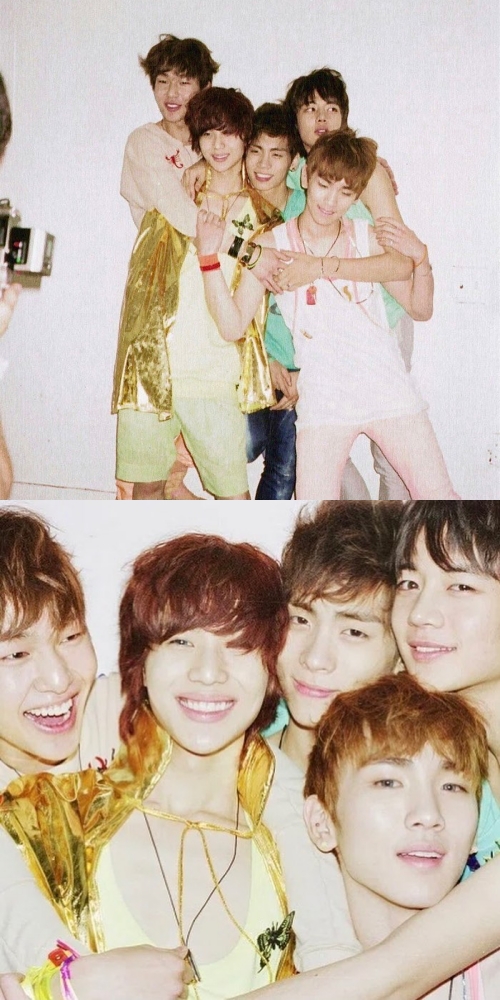 互いに抱きしめ合いながら笑顔を浮かべる仲睦まじい雰囲気の集合写真には、今は亡きジョンヒョンさんの姿もあり、多くのファンを感動させた。